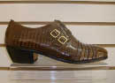 COD.M55 Lezard tabaco com lagarto envelhecido, salto carrapeta e sola de couro.- R$ 250,00