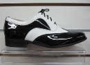 Sapato masculino em verniz preto com detalhe branco,